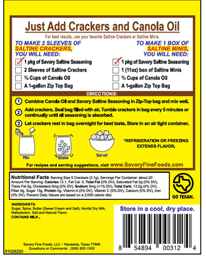 Mix with 3/4 cup of Canola oil and 2 sleeves of Saltine Crackers in a 1 gallon bag.