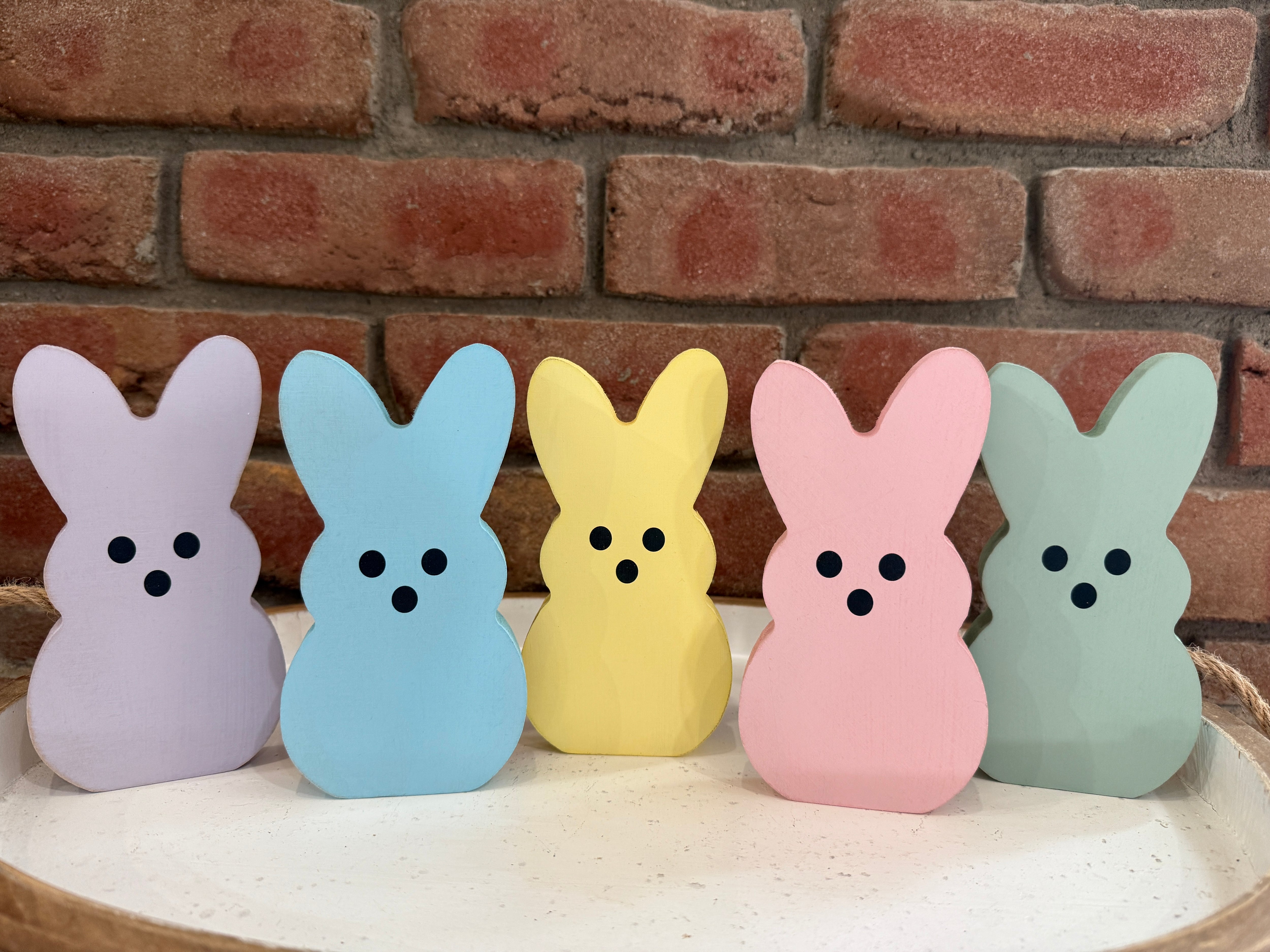Painted on sides and front. Eyes are UV printed for longevity. No two peeps will be exactly the same due to nature of painting and hand sanding.