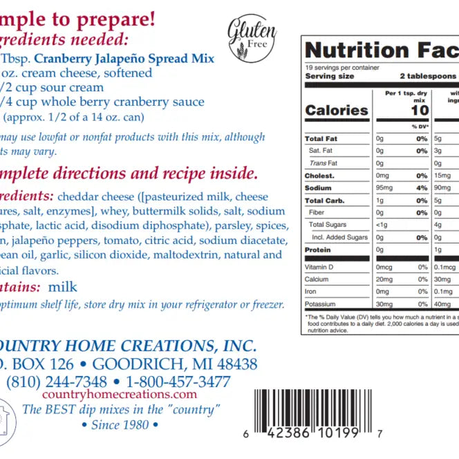 Introducing our Cranberry Jalapeño Spread Mix! Elevate your next holiday gathering with the perfect blend of sweet, spice, creamy texture and tangy cranberry flavor. A little sweet, a little spicy, and perfectly blended. Enjoy it with pita or tortilla chips for a delightful snacking experience.