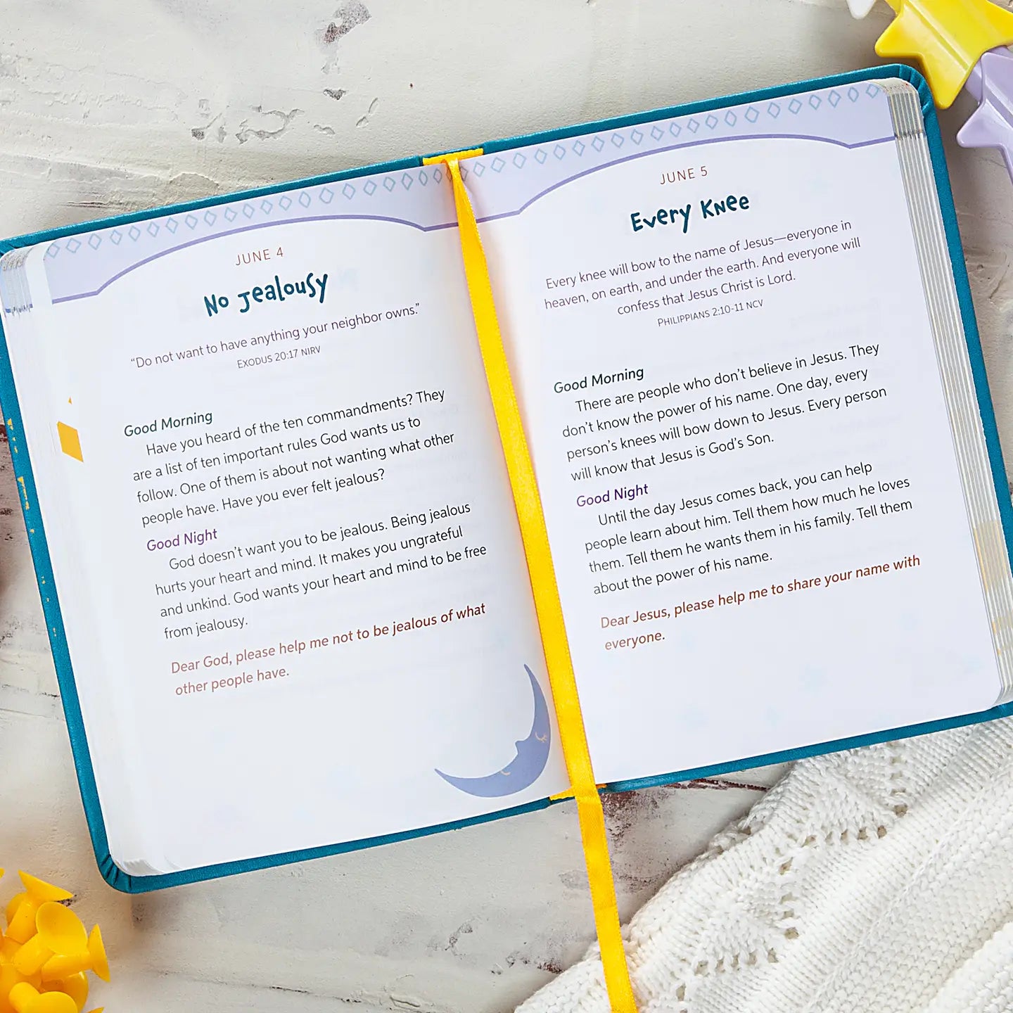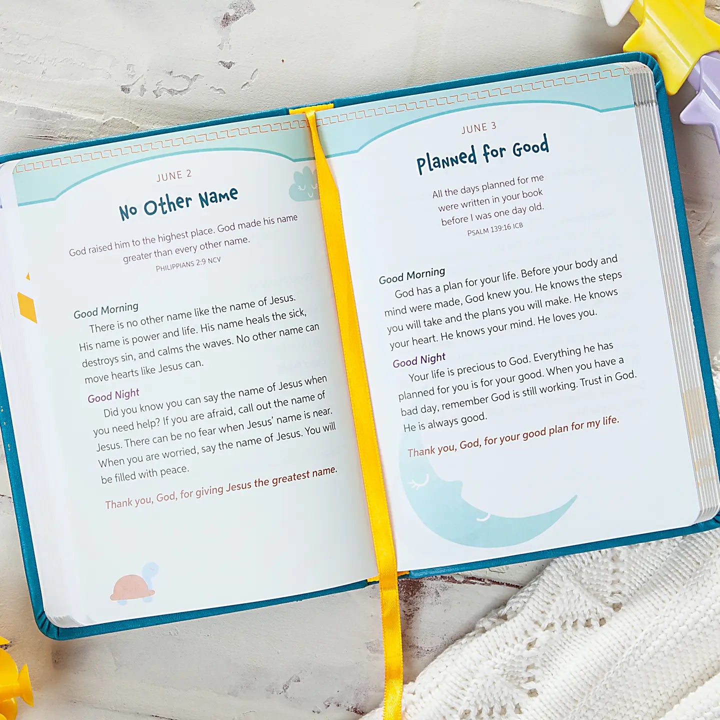 Start and end each day with a smile in this heartwarming devotional made just for little ones. Good Morning and Good Night offers simple, yet powerful messages of love, kindness, and courage, perfect for children ages 4-8. With sweet reflections on topics like sharing, praying, helping others, and being brave, this book teaches kids how God’s love can shape their lives. Each day includes a morning and evening devotion, Scripture, and short prayer, inviting young hearts to grow in faith and discover how they can make the world brighter—one small step at a time. Features: imitation leather, 384 pages, ribbon marker, full-color interior