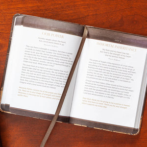 When do you find time to connect with God? Even if we try to be intentional about it, everyday activities and responsibilities often find a way to take priority over our time with Jesus. Prayer can happen at any time, but there is value in setting aside a specific time to communicate with the Lord. As you quiet yourself before him and meditate on these Scriptures, devotions, and prayers, experience the goodness of his presence, and be refreshed with his perfect peace. When you prioritize Jesus above everything, other concerns fade. Hope dawns with the new day. Tender mercies fall fresh. And you find the strength to walk through each day with grace for others and for yourself. Features: imitation leather, 384 pages, ribbon marker