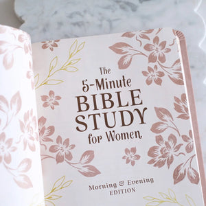 The 5-Minute Bible Study for Women: Morning and Evening Edition will help you establish the discipline of consistent study of God’s Word. You will find that even five minutes focused on scripture and prayer has the power to make a huge difference in your daily life. Soon you will be making time for more! Features: Easy-to-follow Bible studies for women of all ages Usable with your preferred Bible translation 6 months of twice-daily Bible studies 5-minute Bible studies can fit into even the busiest schedules