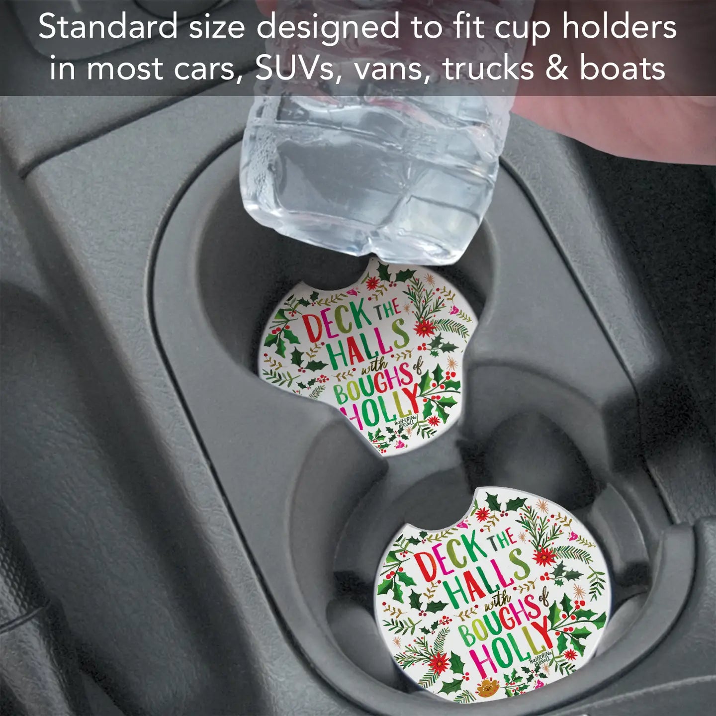 Manufactured in the USA of absorbent stone to absorb excess condensation from beverages. Assists to keep your car's cup holder clean and dry. Convenient notch on side of the car coaster, makes it easy to remove while detailing your car. Beautiful artwork adds distinction to your vehicle’s interior. Clean the coaster by wiping clean with damp cloth and mild detergent. Measures 2.6 inches round and fits most vehicle cup holders. Find that special design to complete your vehicle's personality. Family and Friends will love receiving these long lasting, attractive Coasters for any occasion of the year.