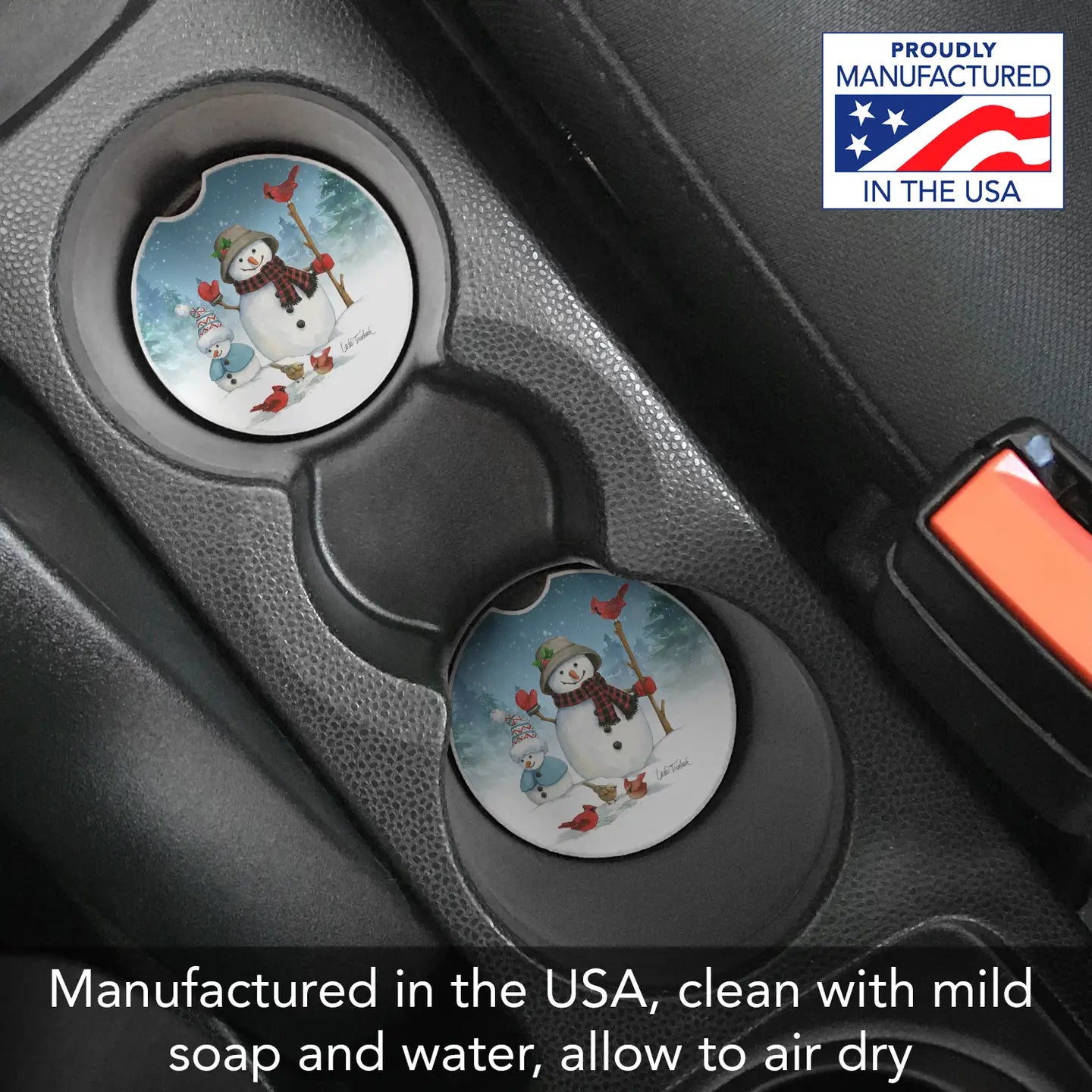 Manufactured in the USA of absorbent stone to absorb excess condensation from beverages. Assists to keep your car's cup holder clean and dry. Convenient notch on side of the car coaster, makes it easy to remove while detailing your car. Beautiful artwork adds distinction to your vehicle’s interior. Clean the coaster by wiping clean with damp cloth and mild detergent. Measures 2.6 inches round and fits most vehicle cup holders. Find that special design to complete your vehicle's personality. Family and Friends will love receiving these long lasting, attractive Coasters for any occasion of the year.