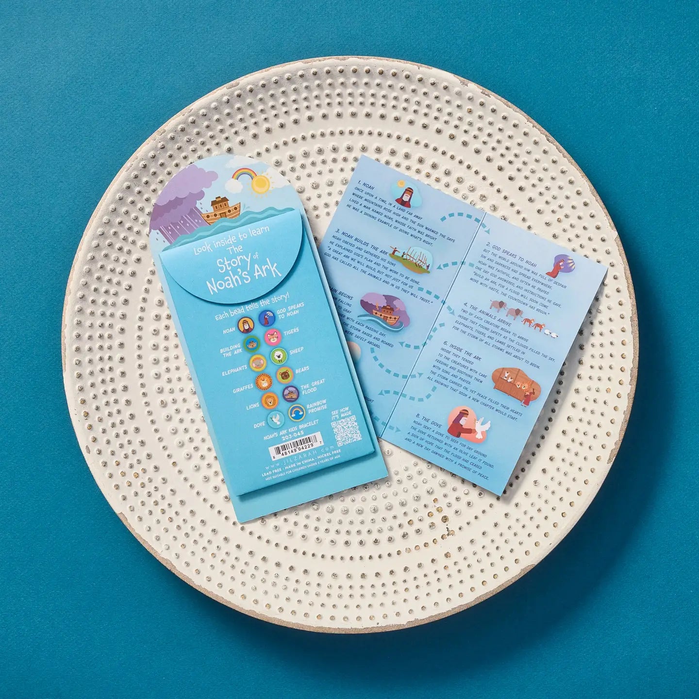 This handmade clay beaded bracelet brings the tale of Noah’s Ark to life—each bead tells a part of the story with an ark-shaped charm to complete the journey. Includes a story card that turns this bracelet into a meaningful, interactive experience for parents and children to share together.