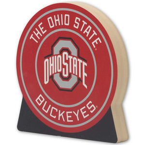 The Ohio State University Official product: O-H-I-O! Display your Buckeye pride with elegance using this classy decor! Featuring a bold, round badge design, this piece showcases OSU's iconic scarlet and gray colors in a striking display. At the center, the esteemed Buckeye logo stands proudly, surrounded by the words, "The Ohio State University Buckeyes," creating a powerful and timeless tribute to the university's storied tradition.