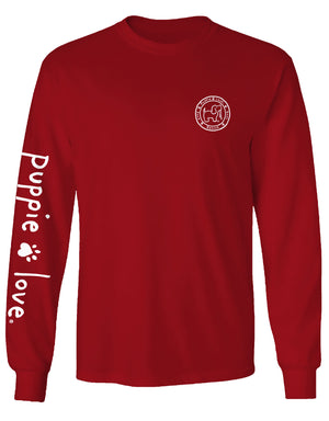 Puppie Love Cardinal Pattern Pup Long Sleeve Tee
