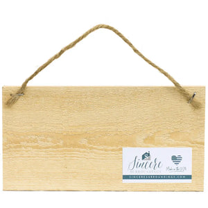 Each sign is made from real cedar wood which accents the wood’s natural grain. This means that each sign is one of a kind. Twine is securely stapled to back of wood for easy hanging. • Raw wood paired with simple sayings adds a personalized touch to every space. • Braided twine allows sign to be easily displayed in any space or to be hung as an ornament. • Wood sign measures 5.5” x 6.5” x .5” — a great size for decorating small nooks and crannies. Made in USA