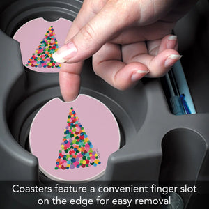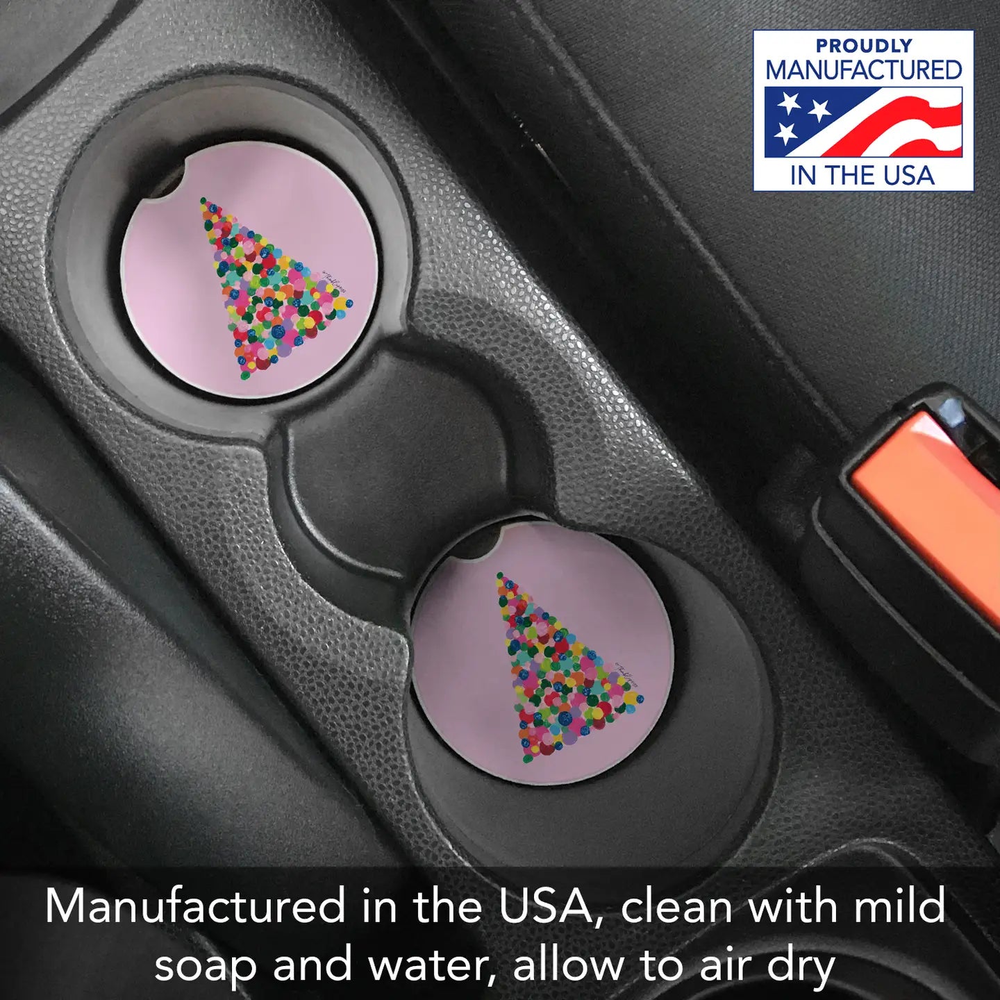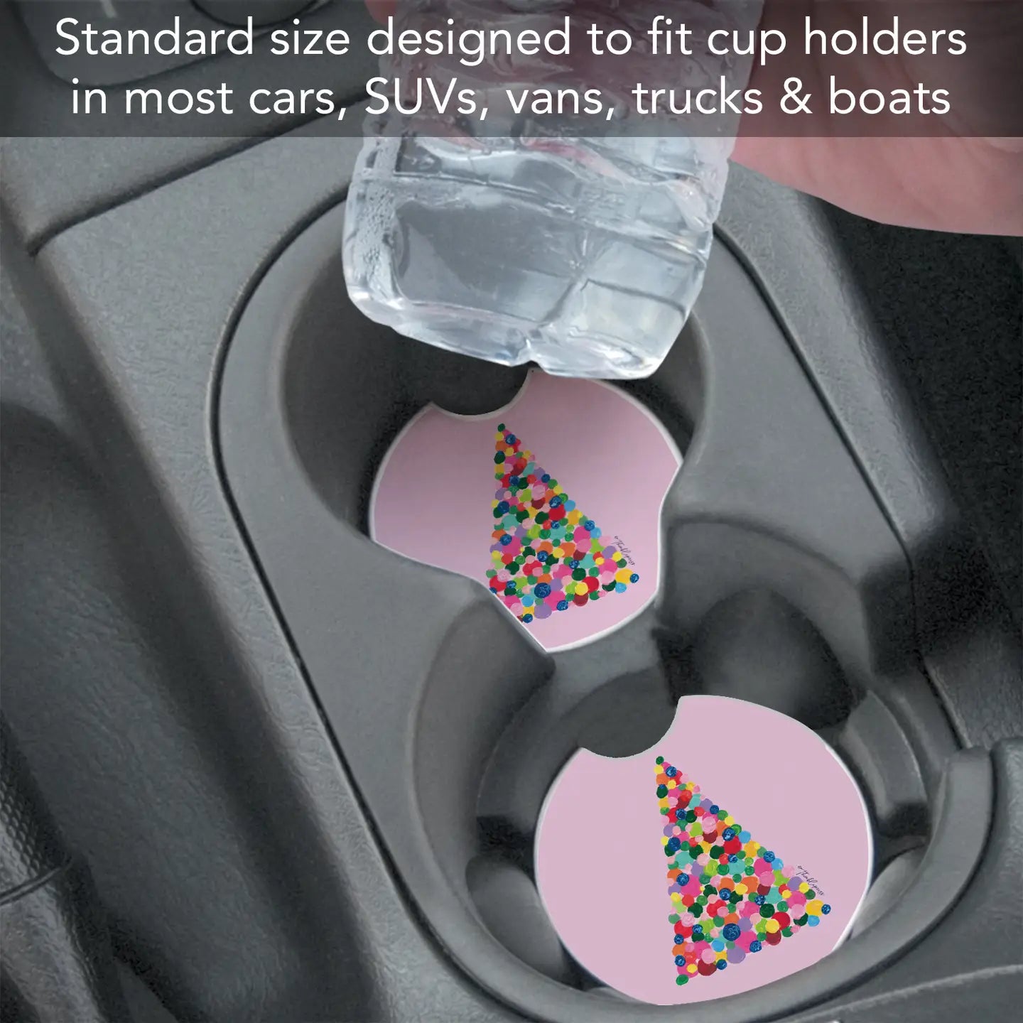 Manufactured in the USA of absorbent stone to absorb excess condensation from beverages. Assists to keep your car's cup holder clean and dry. Convenient notch on side of the car coaster, makes it easy to remove while detailing your car. Beautiful artwork adds distinction to your vehicle’s interior. Clean the coaster by wiping clean with damp cloth and mild detergent. Measures 2.6 inches round and fits most vehicle cup holders. Find that special design to complete your vehicle's personality. Family and Friends will love receiving these long lasting, attractive Coasters for any occasion of the year.