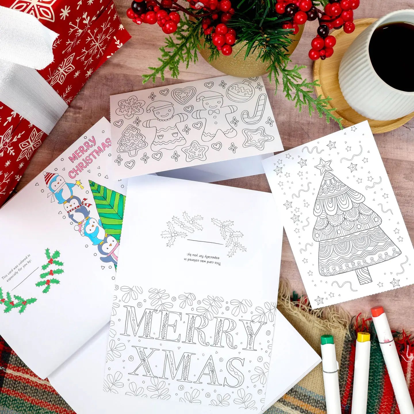 Add a personal touch to your Christmas greetings by coloring in these festive cards and gift tags before sending them to your family and friends. Everyone loves receiving Christmas cards, which show that someone truly cares enough to send a personal greeting to celebrate the holidays. But what if you were to take it a step further and personalize your cards and gift tags by coloring in the designs and adding special messages? This festive kit includes 16 lovingly illustrated cards and 32 gift tags drawn with line art ready to be colored in with your pencils, pens, or markers—plus 124 holiday-themed coloring pages for more coloring fun. As you spend some time relaxing and coloring in each card, gift tag, or festive scene, you’ll enjoy a sense of relaxation and happiness as you think about how much your family and friends mean to you.